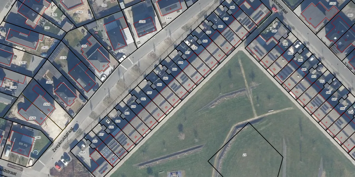 Gebruik de zoekbalk of klik op een perceel voor informatie over de adressen binnen dit perceel.