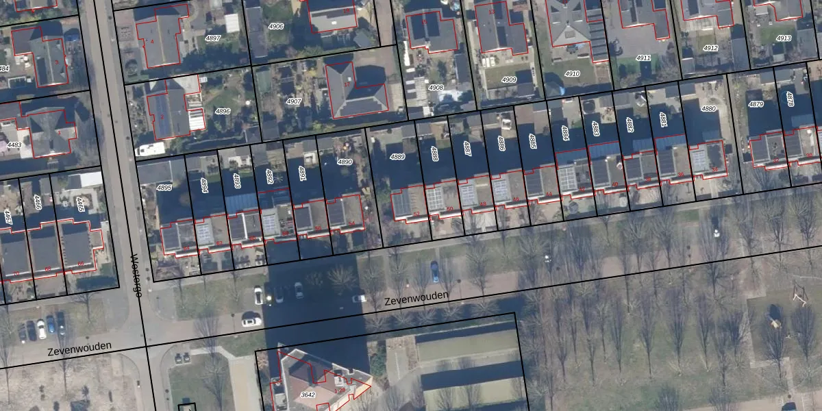 Zevenwouden 52 is gelegen op kadastraal perceel LLS00O4889. Deze kadastrale aanduiding is uniek en wordt gebruikt door het Kadaster om eigendomsrechten en andere zakelijke rechten vast te leggen. Het perceel maakt onderdeel uit van de kadastrale gemeente Lelystad.