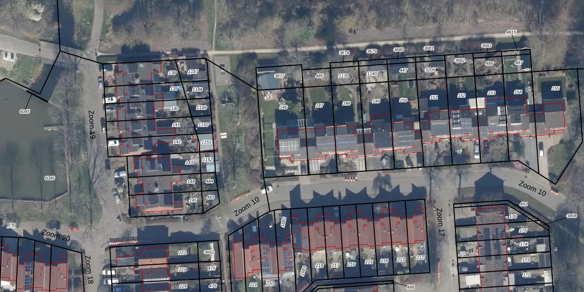 Gebruik de zoekbalk of klik op een perceel voor informatie over de adressen binnen dit perceel.