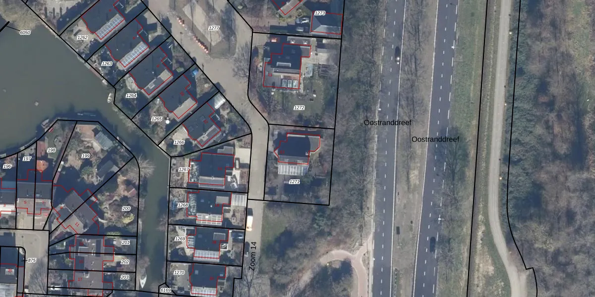 Het perceel waarop Zoom 14 13 staat heeft een oppervlakte van 565 m². Dit is een groot perceel. De perceeloppervlakte wordt geregistreerd door het Kadaster. Gedetailleerde informatie over de maten van dit perceel kunt u vinden in het rapport Kadastrale kaart met maatvoering van Zoom 14 13.