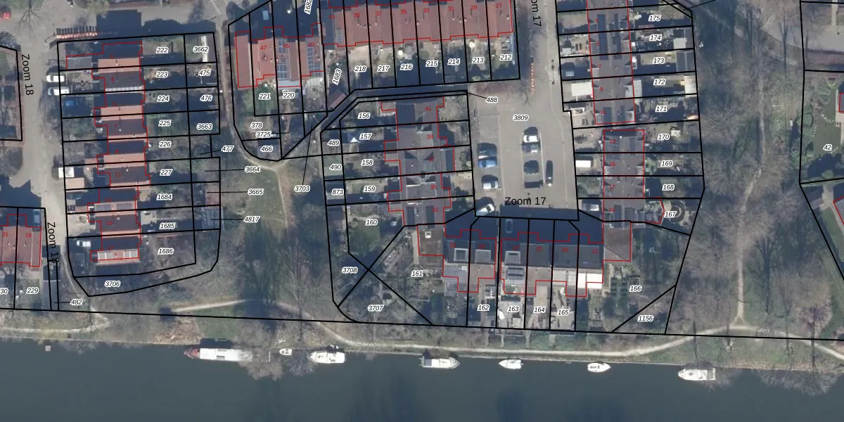 Gebruik de zoekbalk of klik op een perceel voor informatie over de adressen binnen dit perceel.