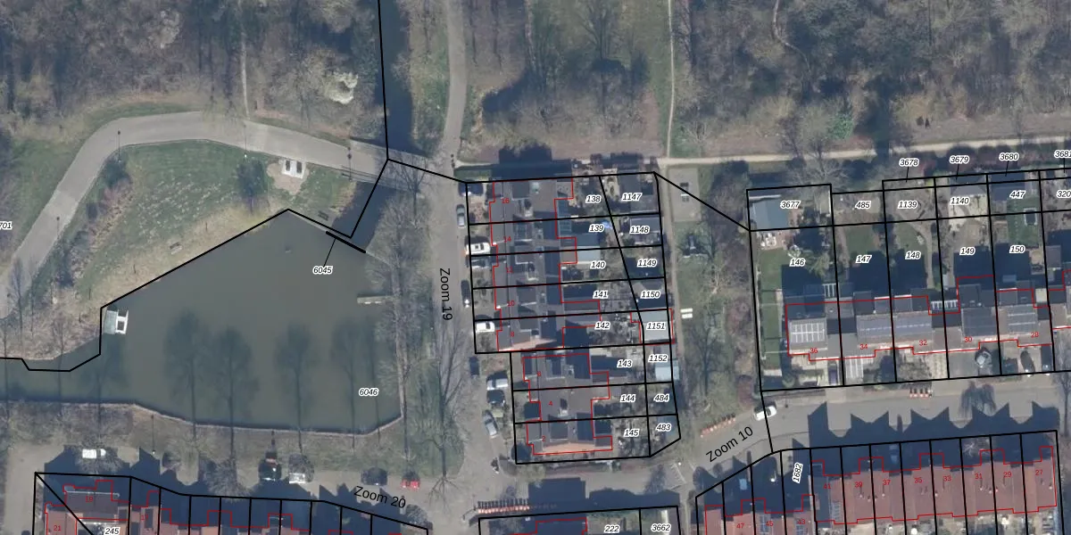 Gebruik de zoekbalk of klik op een perceel voor informatie over de adressen binnen dit perceel.
