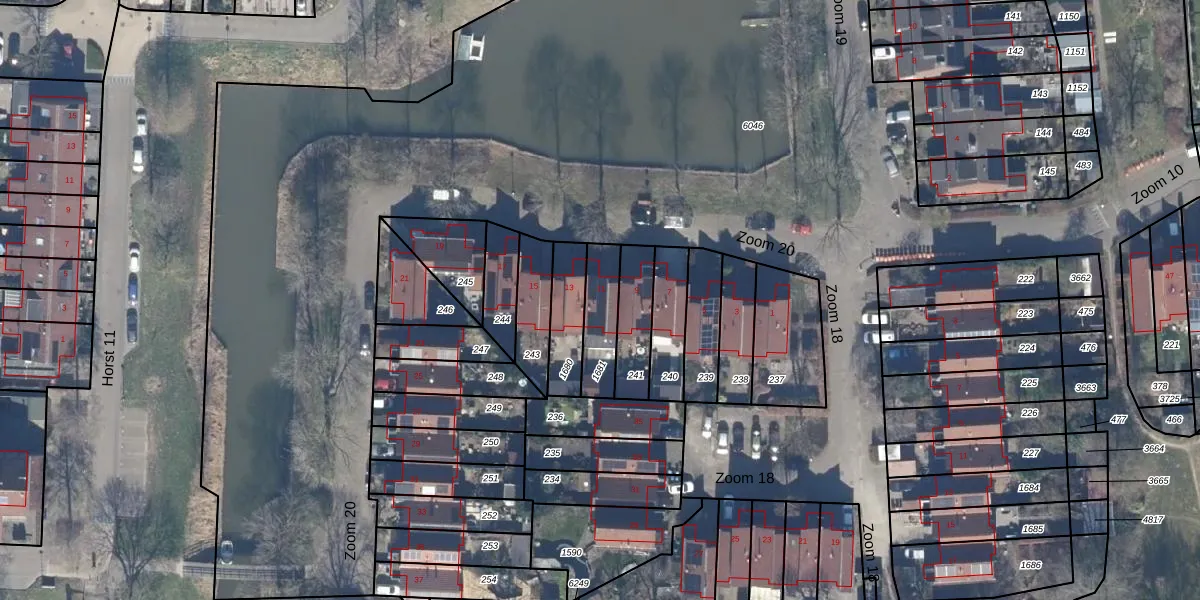 Gebruik de zoekbalk of klik op een perceel voor informatie over de adressen binnen dit perceel.