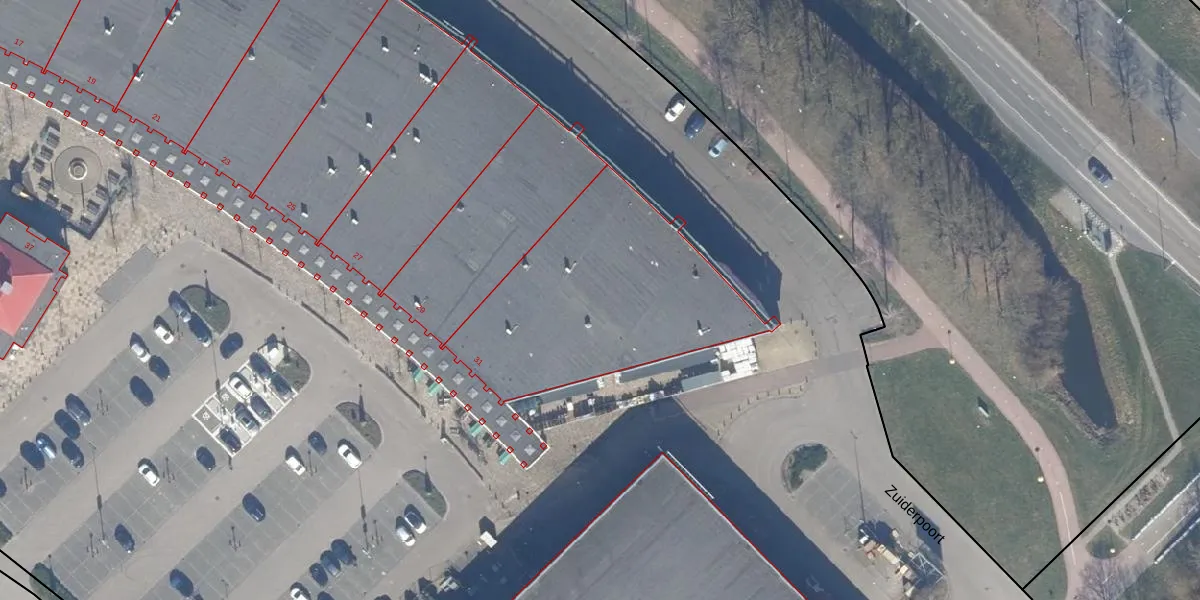 Het perceel waarop Zuiderpoort 31 staat heeft een oppervlakte van 4,2 ha. Dit is een zeer groot perceel. De perceeloppervlakte wordt geregistreerd door het Kadaster. Gedetailleerde informatie over de maten van dit perceel kunt u vinden in het rapport Kadastrale kaart met maatvoering van Zuiderpoort 31.
