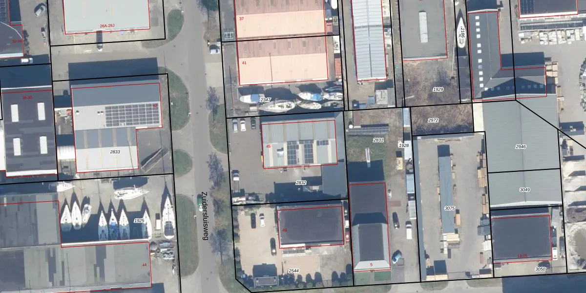 Zuidersluisweg 45 is gelegen op kadastraal perceel LLS00N2832. Deze kadastrale aanduiding is uniek en wordt gebruikt door het Kadaster om eigendomsrechten en andere zakelijke rechten vast te leggen. Het perceel maakt onderdeel uit van de kadastrale gemeente Lelystad.