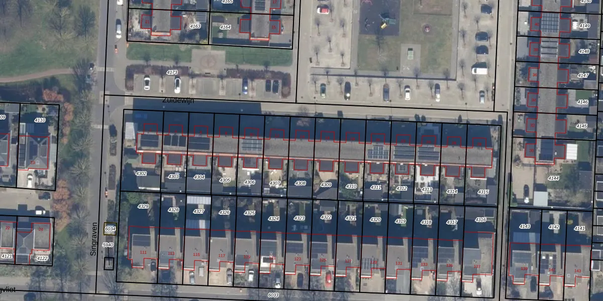 Het perceel waarop Zuidewijn 14 staat heeft een oppervlakte van 228 m². Dit is een middelgroot perceel. De perceeloppervlakte wordt geregistreerd door het Kadaster. Gedetailleerde informatie over de maten van dit perceel kunt u vinden in het rapport Kadastrale kaart met maatvoering van Zuidewijn 14.