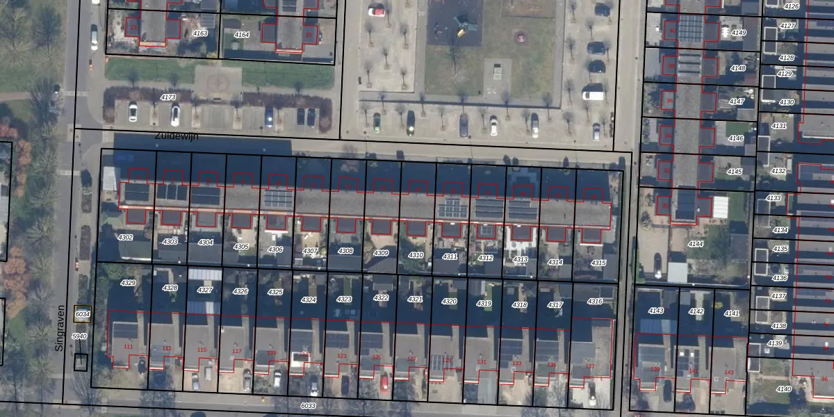 Het perceel waarop Zuidewijn 18 staat heeft een oppervlakte van 228 m². Dit is een middelgroot perceel. De perceeloppervlakte wordt geregistreerd door het Kadaster. Gedetailleerde informatie over de maten van dit perceel kunt u vinden in het rapport Kadastrale kaart met maatvoering van Zuidewijn 18.