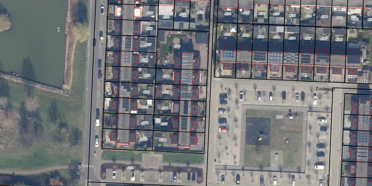 Het perceel waarop Zuidewijn 21 staat heeft een oppervlakte van 234 m². Dit is een middelgroot perceel. De perceeloppervlakte wordt geregistreerd door het Kadaster. Gedetailleerde informatie over de maten van dit perceel kunt u vinden in het rapport Kadastrale kaart met maatvoering van Zuidewijn 21.
