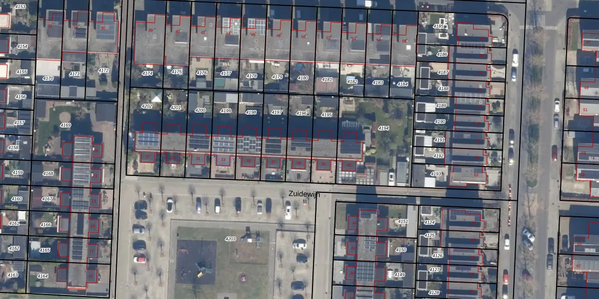 Het perceel waarop Zuidewijn 39 staat heeft een oppervlakte van 247 m². Dit is een middelgroot perceel. De perceeloppervlakte wordt geregistreerd door het Kadaster. Gedetailleerde informatie over de maten van dit perceel kunt u vinden in het rapport Kadastrale kaart met maatvoering van Zuidewijn 39.