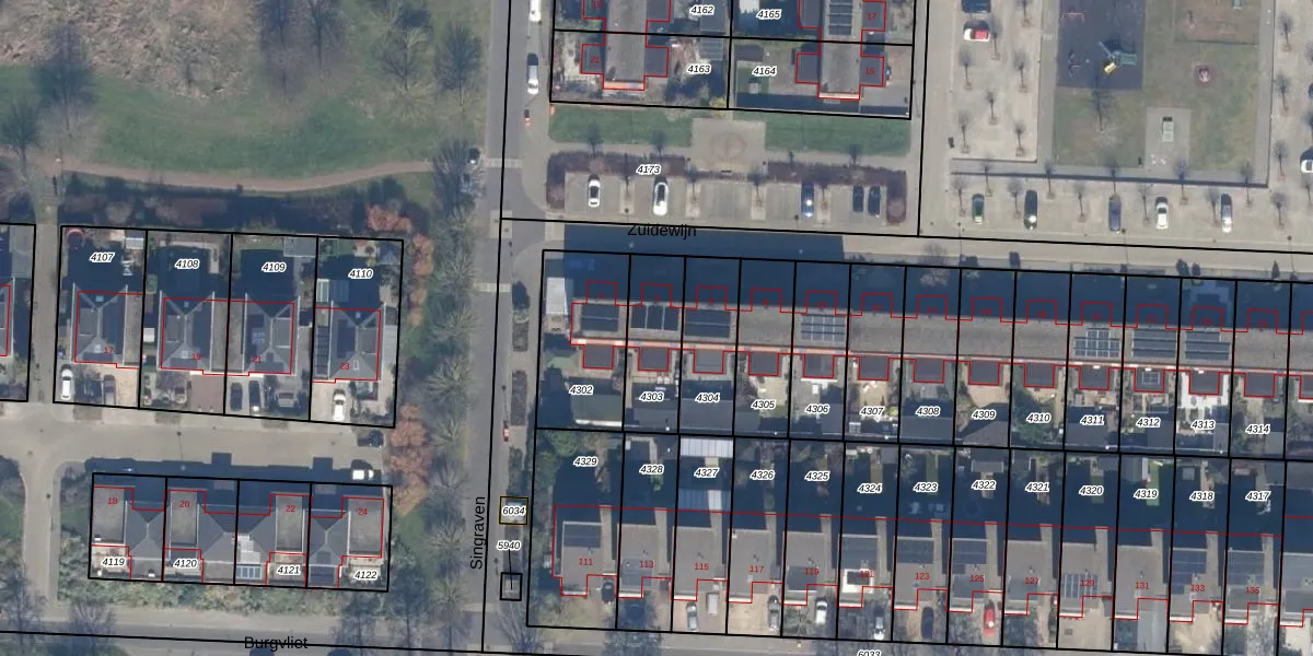 Gebruik de zoekbalk of klik op een perceel voor informatie over de adressen binnen dit perceel.