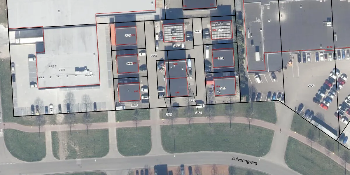 Zuiveringweg 48-B is gelegen op kadastraal perceel LLS00N2891. Deze kadastrale aanduiding is uniek en wordt gebruikt door het Kadaster om eigendomsrechten en andere zakelijke rechten vast te leggen. Het perceel maakt onderdeel uit van de kadastrale gemeente Lelystad.
