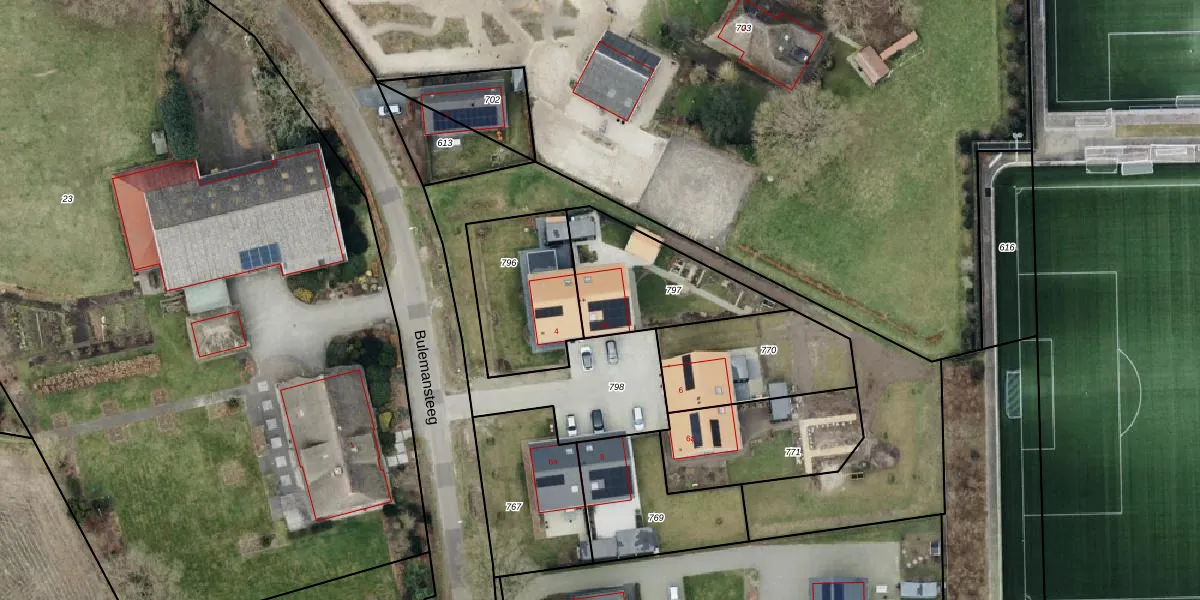 Het perceel waarop Bulemansteeg 4-a staat heeft een oppervlakte van 424 m². Dit is een groot perceel. De perceeloppervlakte wordt geregistreerd door het Kadaster. Gedetailleerde informatie over de maten van dit perceel kunt u vinden in het rapport Kadastrale kaart met maatvoering van Bulemansteeg 4-a.