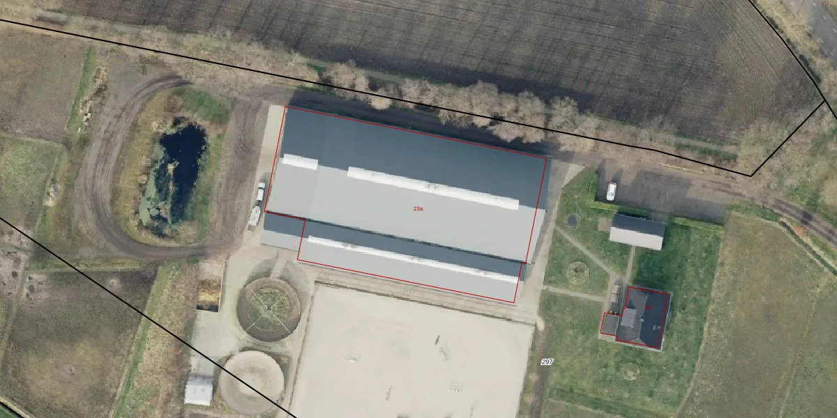Het perceel waarop Hellendoornseweg 23-a staat heeft een oppervlakte van 2,8 ha. Dit is een zeer groot perceel. De perceeloppervlakte wordt geregistreerd door het Kadaster. Gedetailleerde informatie over de maten van dit perceel kunt u vinden in het rapport Kadastrale kaart met maatvoering van Hellendoornseweg 23-a.