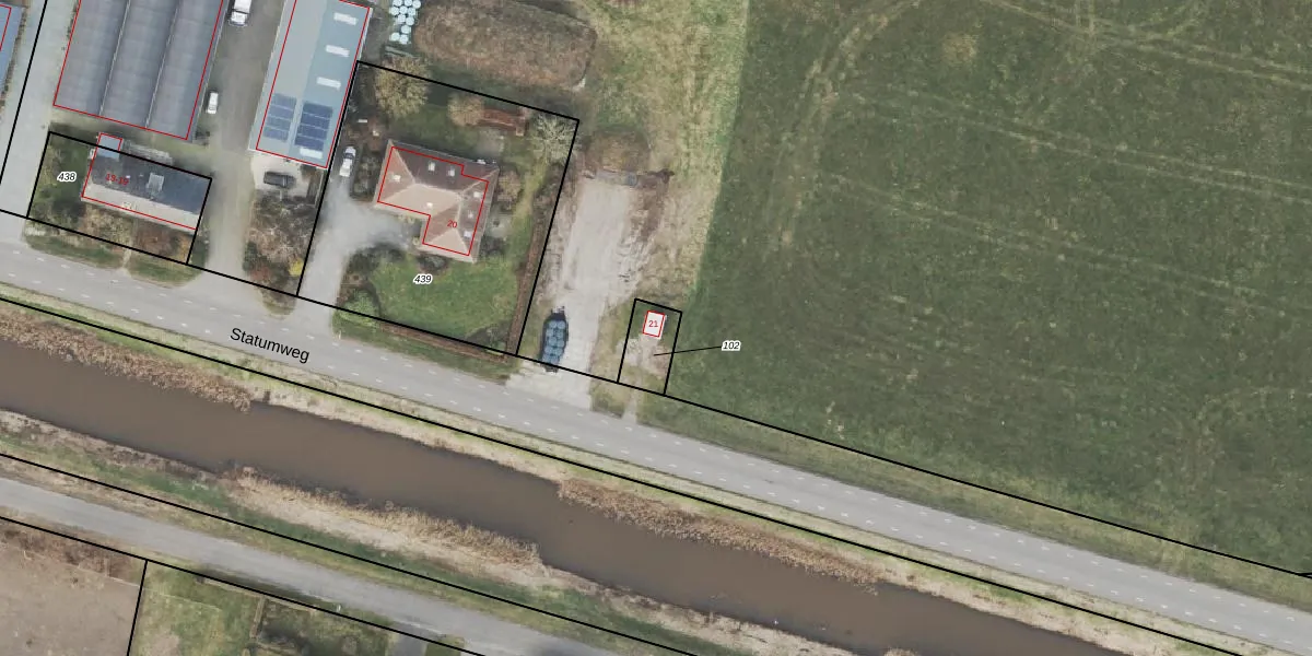 Statumweg 21 is gelegen op kadastraal perceel OMN01R102. Deze kadastrale aanduiding is uniek en wordt gebruikt door het Kadaster om eigendomsrechten en andere zakelijke rechten vast te leggen. Het perceel maakt onderdeel uit van de kadastrale gemeente Ambt-Ommen.