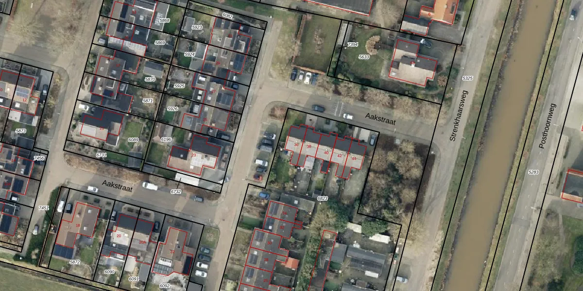 Het perceel waarop Aakstraat 36 staat heeft een oppervlakte van 3260 m². Dit is een zeer groot perceel. De perceeloppervlakte wordt geregistreerd door het Kadaster. Gedetailleerde informatie over de maten van dit perceel kunt u vinden in het rapport Kadastrale kaart met maatvoering van Aakstraat 36.