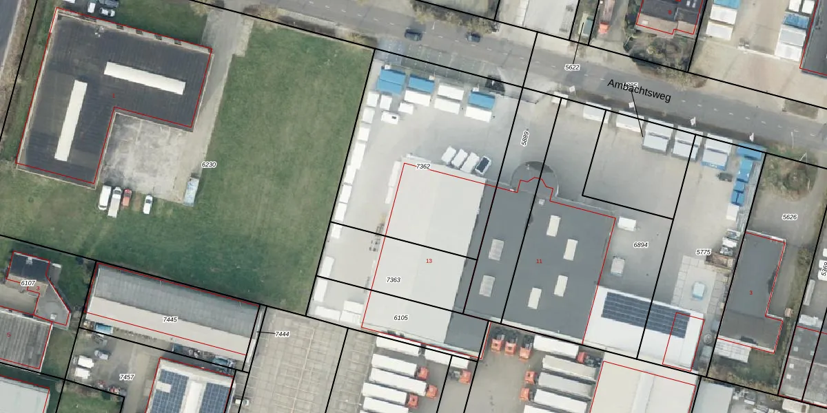 Ambachtsweg 13 is gelegen op kadastraal perceel DSN01F7362. Deze kadastrale aanduiding is uniek en wordt gebruikt door het Kadaster om eigendomsrechten en andere zakelijke rechten vast te leggen. Het perceel maakt onderdeel uit van de kadastrale gemeente Dalfsen.