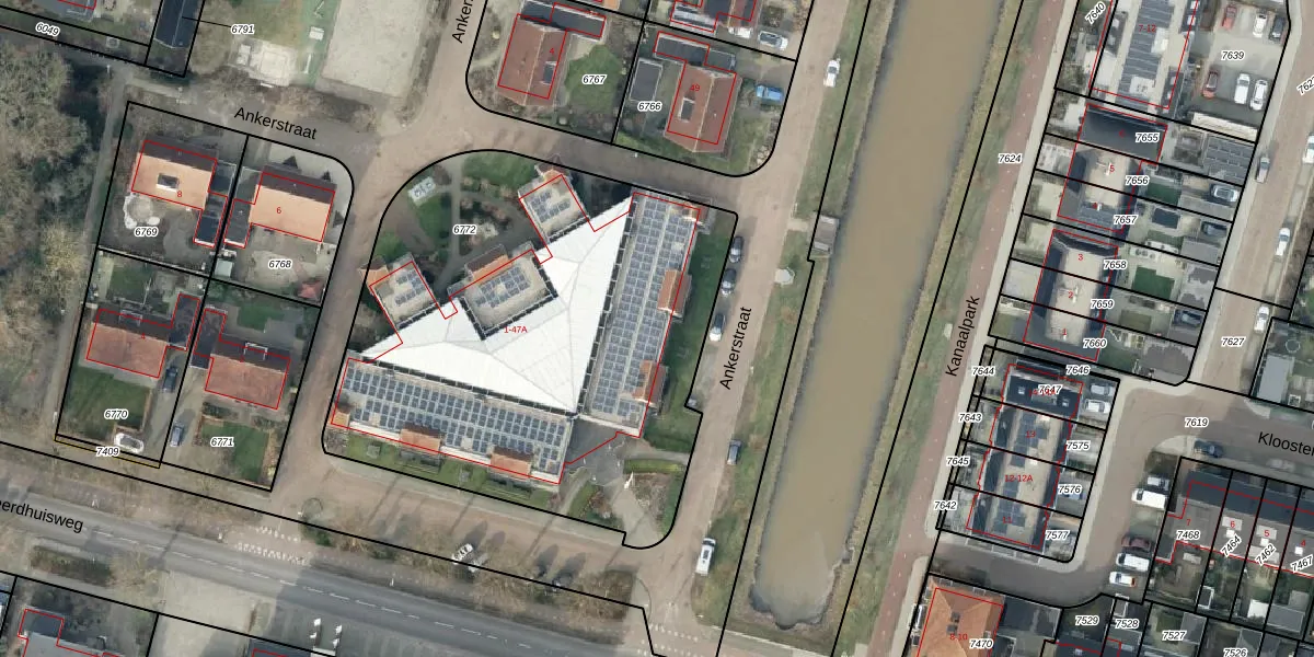 Het perceel waarop Ankerstraat 15 staat heeft een oppervlakte van 2682 m². Dit is een zeer groot perceel. De perceeloppervlakte wordt geregistreerd door het Kadaster. Gedetailleerde informatie over de maten van dit perceel kunt u vinden in het rapport Kadastrale kaart met maatvoering van Ankerstraat 15.
