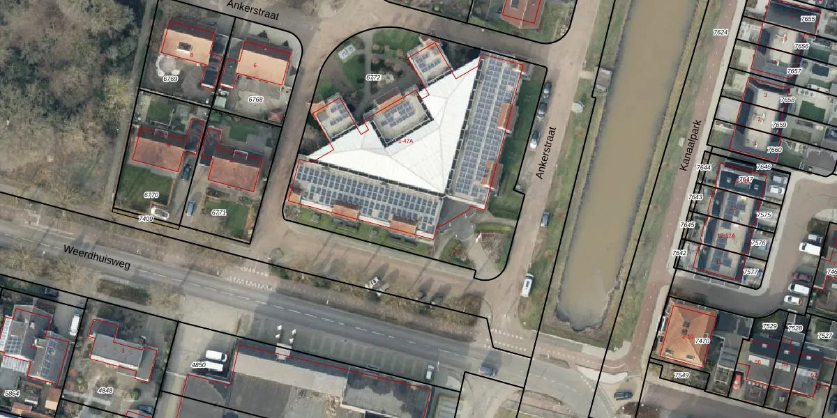 Het perceel waarop Ankerstraat 21 staat heeft een oppervlakte van 2682 m². Dit is een zeer groot perceel. De perceeloppervlakte wordt geregistreerd door het Kadaster. Gedetailleerde informatie over de maten van dit perceel kunt u vinden in het rapport Kadastrale kaart met maatvoering van Ankerstraat 21.