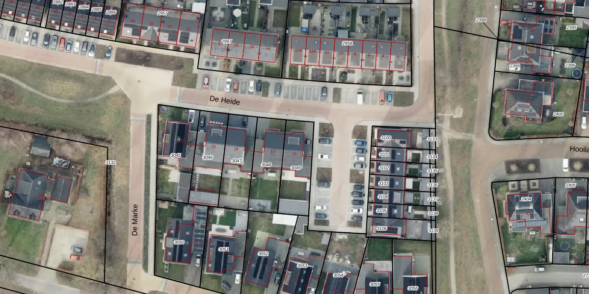 Het perceel waarop De Heide 15 staat heeft een oppervlakte van 320 m². Dit is een groot perceel. De perceeloppervlakte wordt geregistreerd door het Kadaster. Gedetailleerde informatie over de maten van dit perceel kunt u vinden in het rapport Kadastrale kaart met maatvoering van De Heide 15.