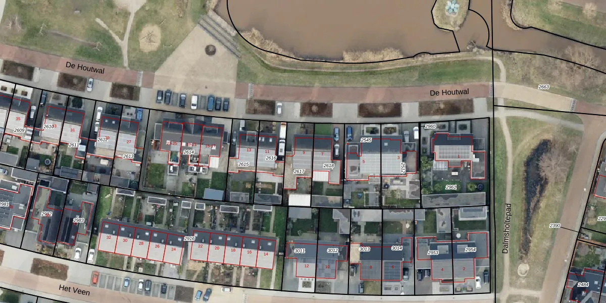 Het perceel waarop De Houtwal 9 staat heeft een oppervlakte van 257 m². Dit is een middelgroot perceel. De perceeloppervlakte wordt geregistreerd door het Kadaster. Gedetailleerde informatie over de maten van dit perceel kunt u vinden in het rapport Kadastrale kaart met maatvoering van De Houtwal 9.
