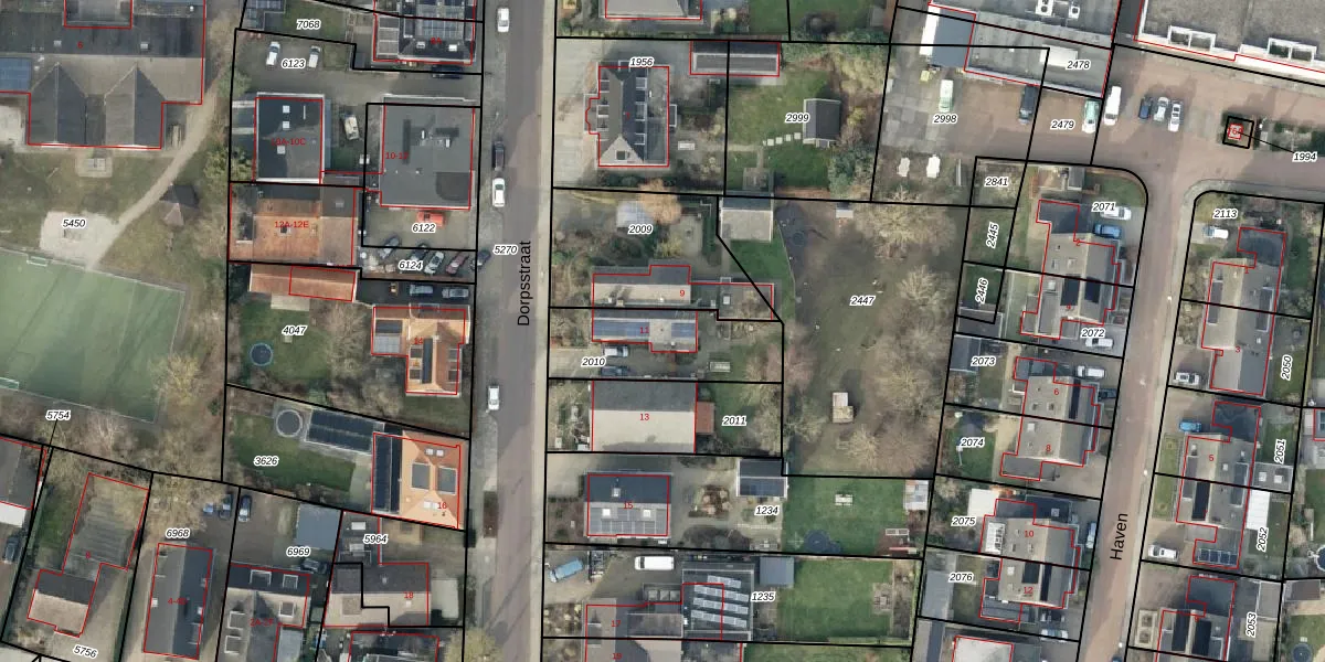 Gebruik de zoekbalk of klik op een perceel voor informatie over de adressen binnen dit perceel.