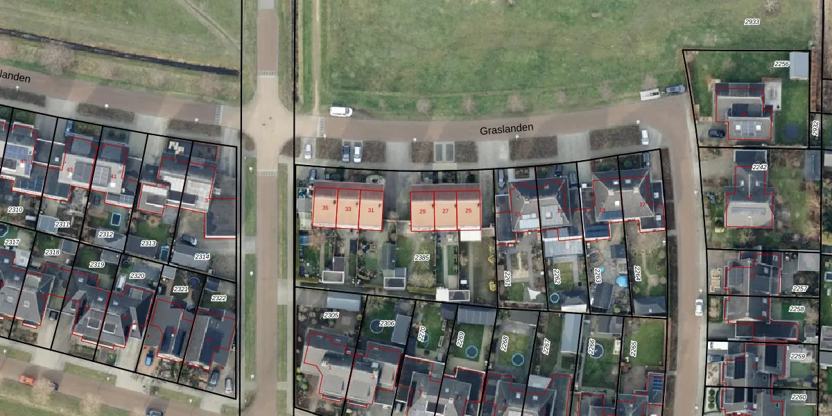 Graslanden 29 is gelegen op kadastraal perceel DSN01M2385. Deze kadastrale aanduiding is uniek en wordt gebruikt door het Kadaster om eigendomsrechten en andere zakelijke rechten vast te leggen. Het perceel maakt onderdeel uit van de kadastrale gemeente Dalfsen.