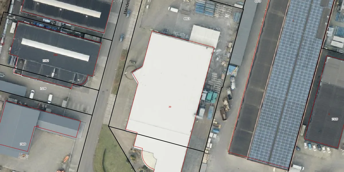 Het perceel waarop Handelsweg 39 staat heeft een oppervlakte van 4998 m². Dit is een zeer groot perceel. De perceeloppervlakte wordt geregistreerd door het Kadaster. Gedetailleerde informatie over de maten van dit perceel kunt u vinden in het rapport Kadastrale kaart met maatvoering van Handelsweg 39.