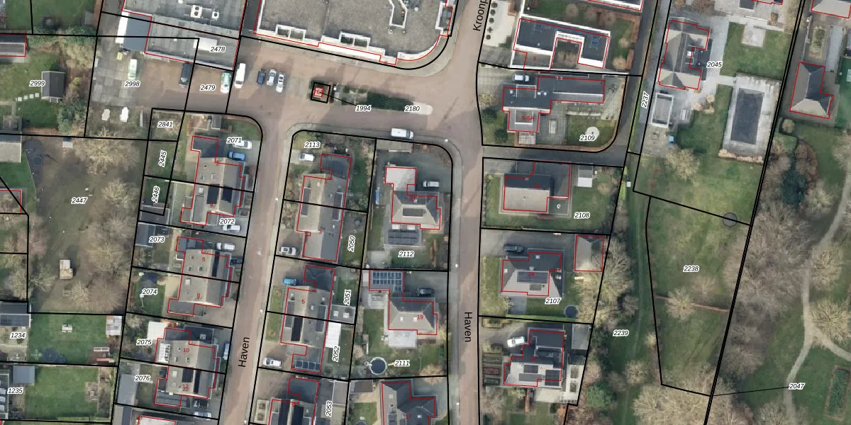 Het perceel waarop Haven 21 staat heeft een oppervlakte van 576 m². Dit is een groot perceel. De perceeloppervlakte wordt geregistreerd door het Kadaster. Gedetailleerde informatie over de maten van dit perceel kunt u vinden in het rapport Kadastrale kaart met maatvoering van Haven 21.