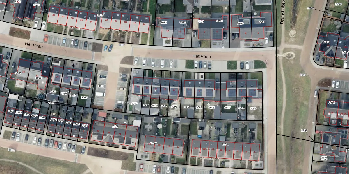Gebruik de zoekbalk of klik op een perceel voor informatie over de adressen binnen dit perceel.