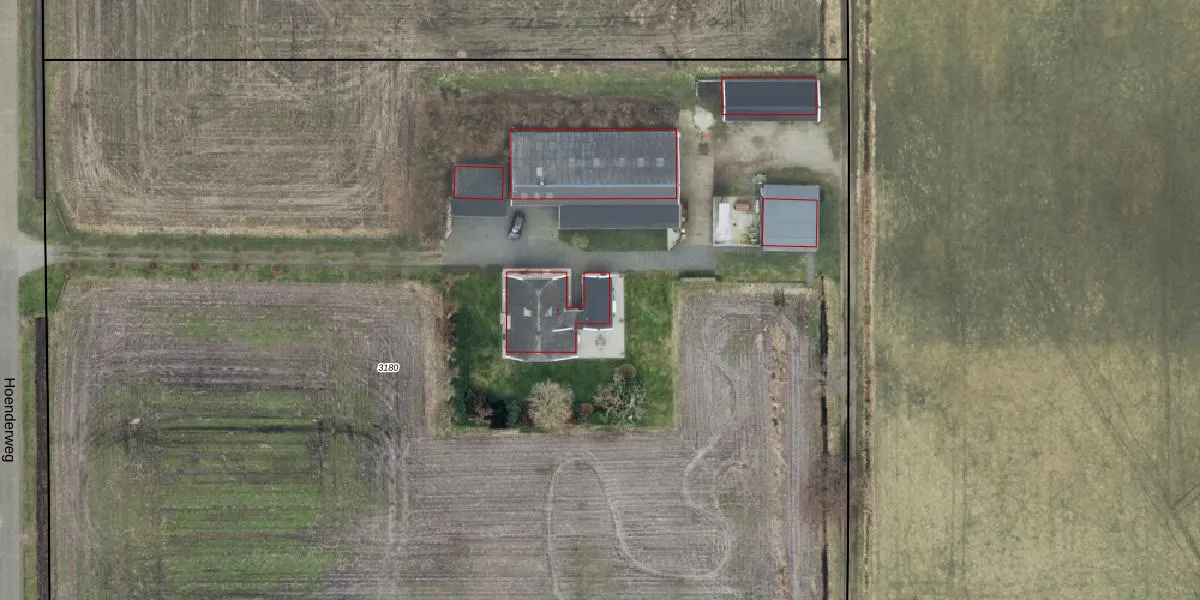 Het perceel waarop Hoenderweg 1 staat heeft een oppervlakte van 1,4 ha. Dit is een zeer groot perceel. De perceeloppervlakte wordt geregistreerd door het Kadaster. Gedetailleerde informatie over de maten van dit perceel kunt u vinden in het rapport Kadastrale kaart met maatvoering van Hoenderweg 1.