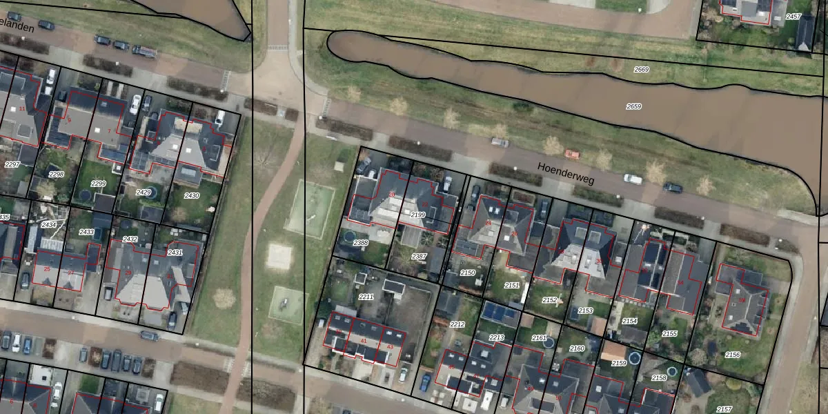 Gebruik de zoekbalk of klik op een perceel voor informatie over de adressen binnen dit perceel.