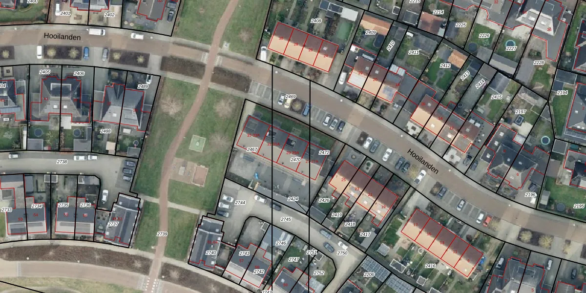 Het perceel waarop Hooilanden 29 staat heeft een oppervlakte van 390 m². Dit is een groot perceel. De perceeloppervlakte wordt geregistreerd door het Kadaster. Gedetailleerde informatie over de maten van dit perceel kunt u vinden in het rapport Kadastrale kaart met maatvoering van Hooilanden 29.