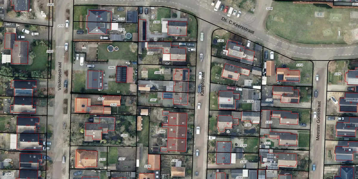 Gebruik de zoekbalk of klik op een perceel voor informatie over de adressen binnen dit perceel.