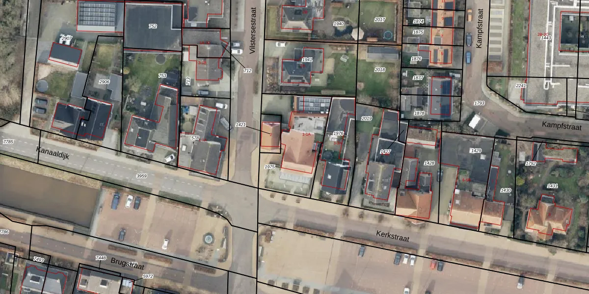 Kerkstraat 1-A is gelegen op kadastraal perceel DSN01M1975. Deze kadastrale aanduiding is uniek en wordt gebruikt door het Kadaster om eigendomsrechten en andere zakelijke rechten vast te leggen. Het perceel maakt onderdeel uit van de kadastrale gemeente Dalfsen.