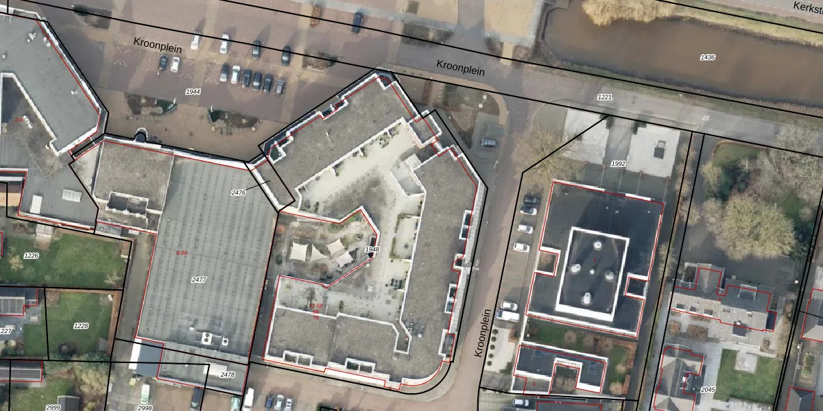 Het perceel waarop Kroonplein 40 staat heeft een oppervlakte van 3297 m². Dit is een zeer groot perceel. De perceeloppervlakte wordt geregistreerd door het Kadaster. Gedetailleerde informatie over de maten van dit perceel kunt u vinden in het rapport Kadastrale kaart met maatvoering van Kroonplein 40.