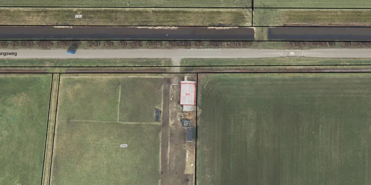 Het perceel waarop Langsweg 31-A staat heeft een oppervlakte van 6005 m². Dit is een zeer groot perceel. De perceeloppervlakte wordt geregistreerd door het Kadaster. Gedetailleerde informatie over de maten van dit perceel kunt u vinden in het rapport Kadastrale kaart met maatvoering van Langsweg 31-A.