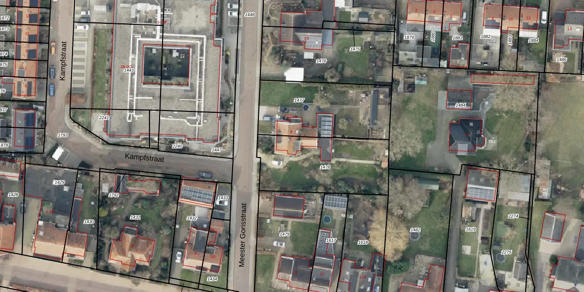 Gebruik de zoekbalk of klik op een perceel voor informatie over de adressen binnen dit perceel.
