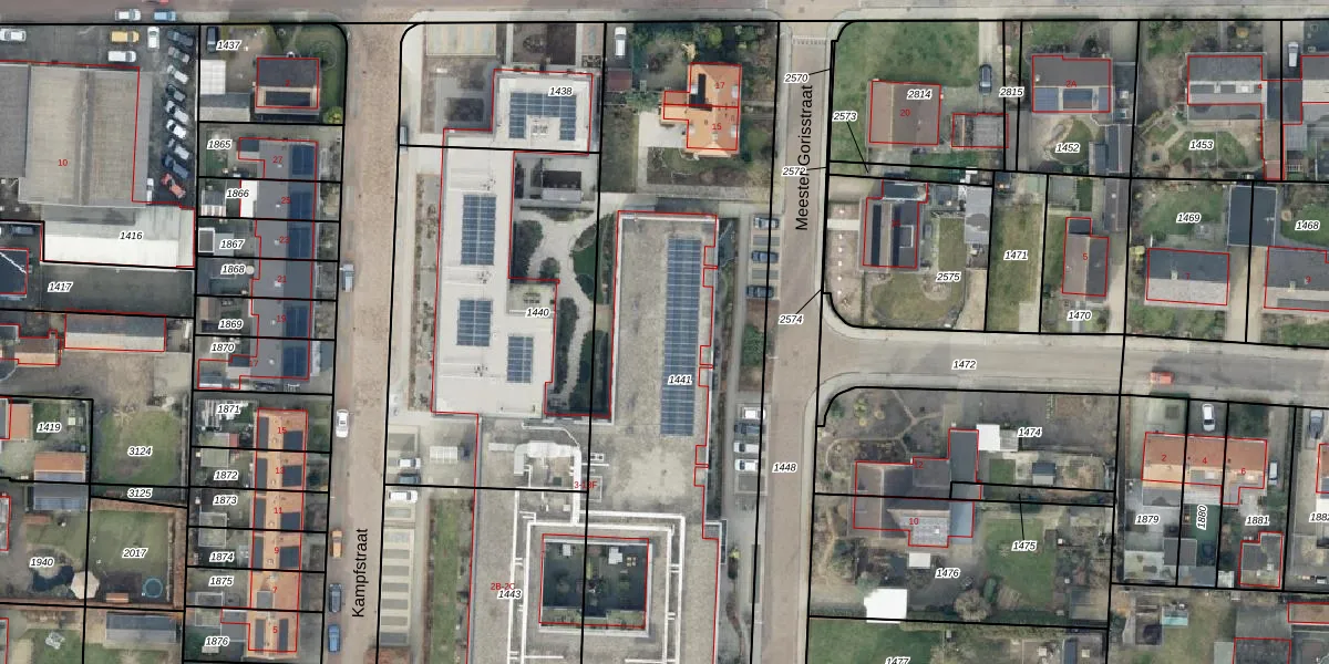 Het perceel waarop Meester Gorisstraat 7-D staat heeft een oppervlakte van 2600 m². Dit is een zeer groot perceel. De perceeloppervlakte wordt geregistreerd door het Kadaster. Gedetailleerde informatie over de maten van dit perceel kunt u vinden in het rapport Kadastrale kaart met maatvoering van Meester Gorisstraat 7-D.