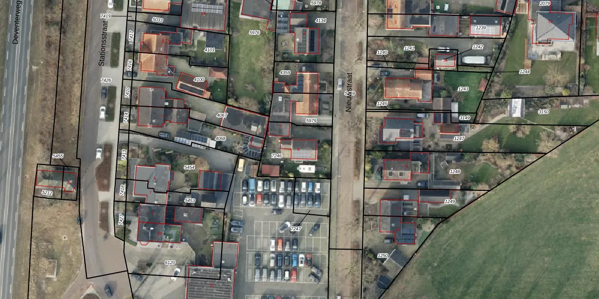 Gebruik de zoekbalk of klik op een perceel voor informatie over de adressen binnen dit perceel.