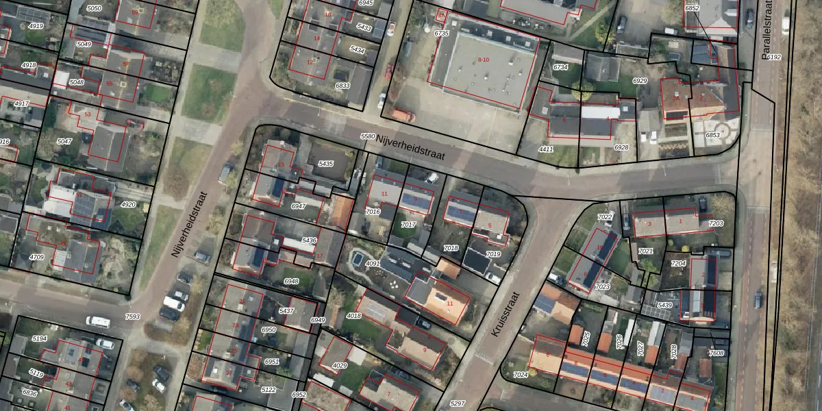 Het perceel waarop Nijverheidstraat 9 staat heeft een oppervlakte van 198 m². Dit is een middelgroot perceel. De perceeloppervlakte wordt geregistreerd door het Kadaster. Gedetailleerde informatie over de maten van dit perceel kunt u vinden in het rapport Kadastrale kaart met maatvoering van Nijverheidstraat 9.