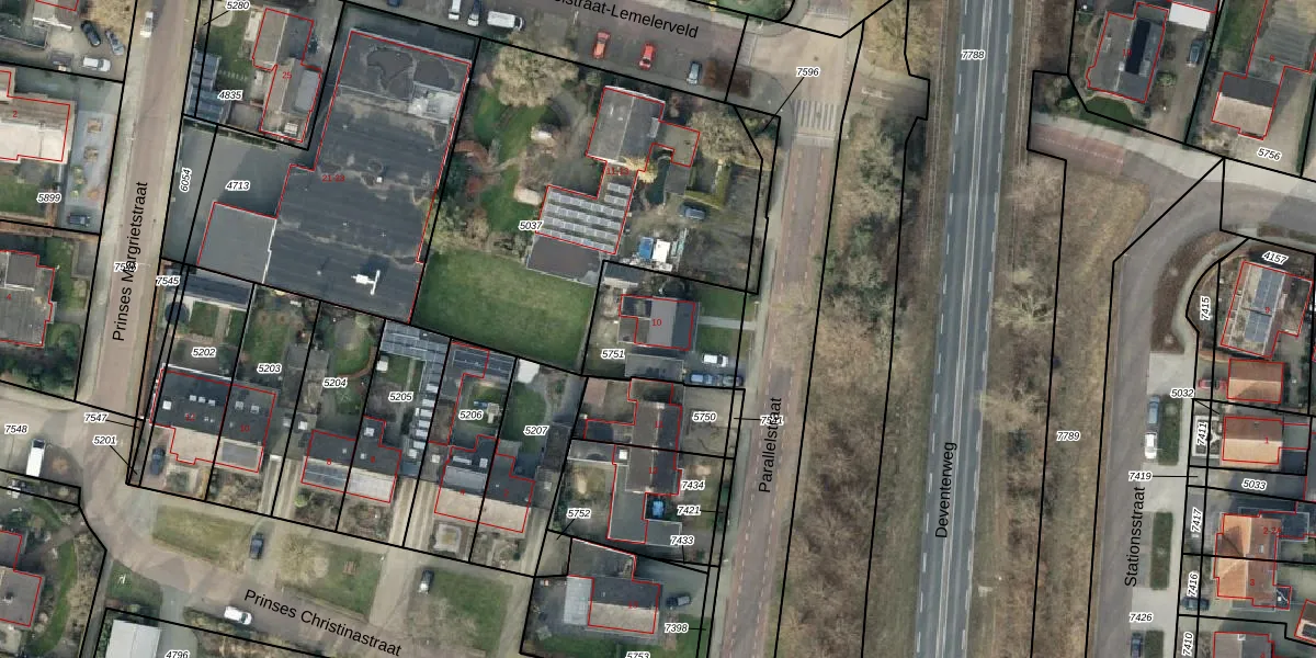 Parallelstraat 10 is gelegen op kadastraal perceel DSN01F5751. Deze kadastrale aanduiding is uniek en wordt gebruikt door het Kadaster om eigendomsrechten en andere zakelijke rechten vast te leggen. Het perceel maakt onderdeel uit van de kadastrale gemeente Dalfsen.