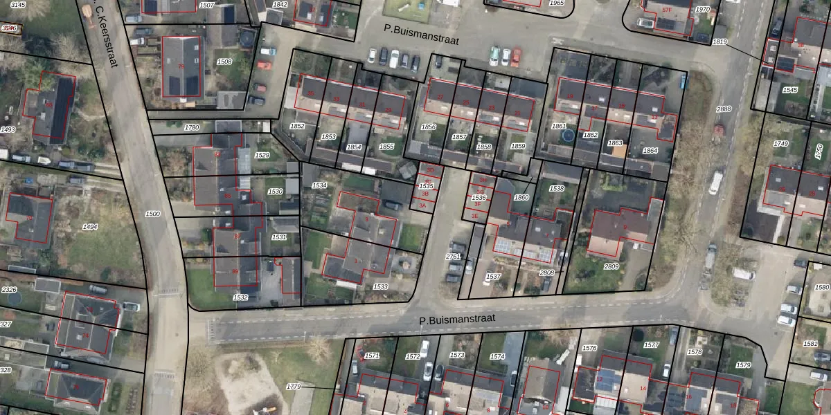 Het perceel waarop P.Buismanstraat 3-A staat heeft een oppervlakte van 71 m². Dit is een klein perceel. De perceeloppervlakte wordt geregistreerd door het Kadaster. Gedetailleerde informatie over de maten van dit perceel kunt u vinden in het rapport Kadastrale kaart met maatvoering van P.Buismanstraat 3-A.