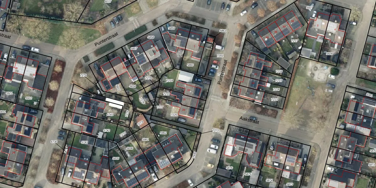 Het perceel waarop Punterstraat 33 staat heeft een oppervlakte van 293 m². Dit is een middelgroot perceel. De perceeloppervlakte wordt geregistreerd door het Kadaster. Gedetailleerde informatie over de maten van dit perceel kunt u vinden in het rapport Kadastrale kaart met maatvoering van Punterstraat 33.