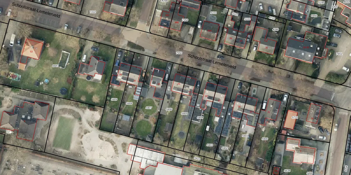 Schoolstraat-Lemelerveld 43 is gelegen op kadastraal perceel DSN01F5906. Deze kadastrale aanduiding is uniek en wordt gebruikt door het Kadaster om eigendomsrechten en andere zakelijke rechten vast te leggen. Het perceel maakt onderdeel uit van de kadastrale gemeente Dalfsen.