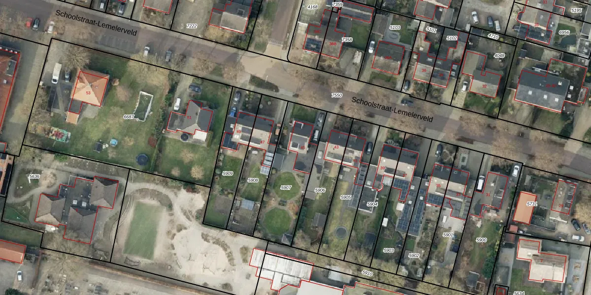 Schoolstraat-Lemelerveld 45 is gelegen op kadastraal perceel DSN01F5907. Deze kadastrale aanduiding is uniek en wordt gebruikt door het Kadaster om eigendomsrechten en andere zakelijke rechten vast te leggen. Het perceel maakt onderdeel uit van de kadastrale gemeente Dalfsen.