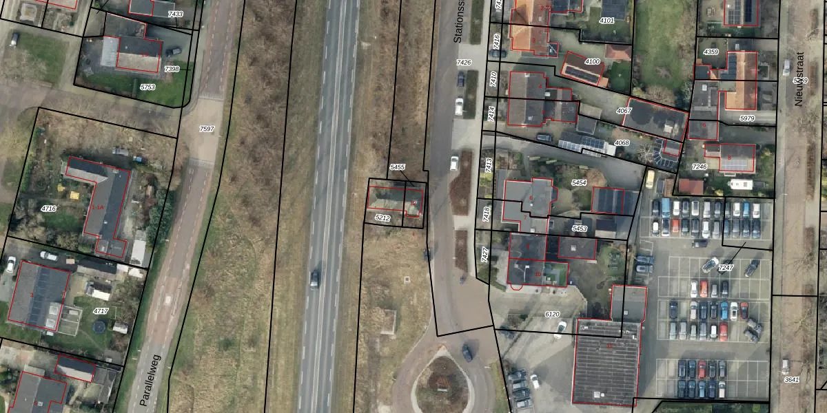Het perceel waarop Stationsstraat 12 staat heeft een oppervlakte van 55 m². Dit is een klein perceel. De perceeloppervlakte wordt geregistreerd door het Kadaster. Gedetailleerde informatie over de maten van dit perceel kunt u vinden in het rapport Kadastrale kaart met maatvoering van Stationsstraat 12.