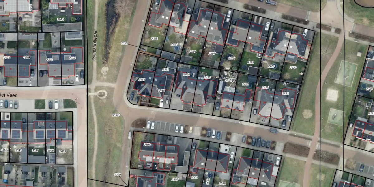 Gebruik de zoekbalk of klik op een perceel voor informatie over de adressen binnen dit perceel.