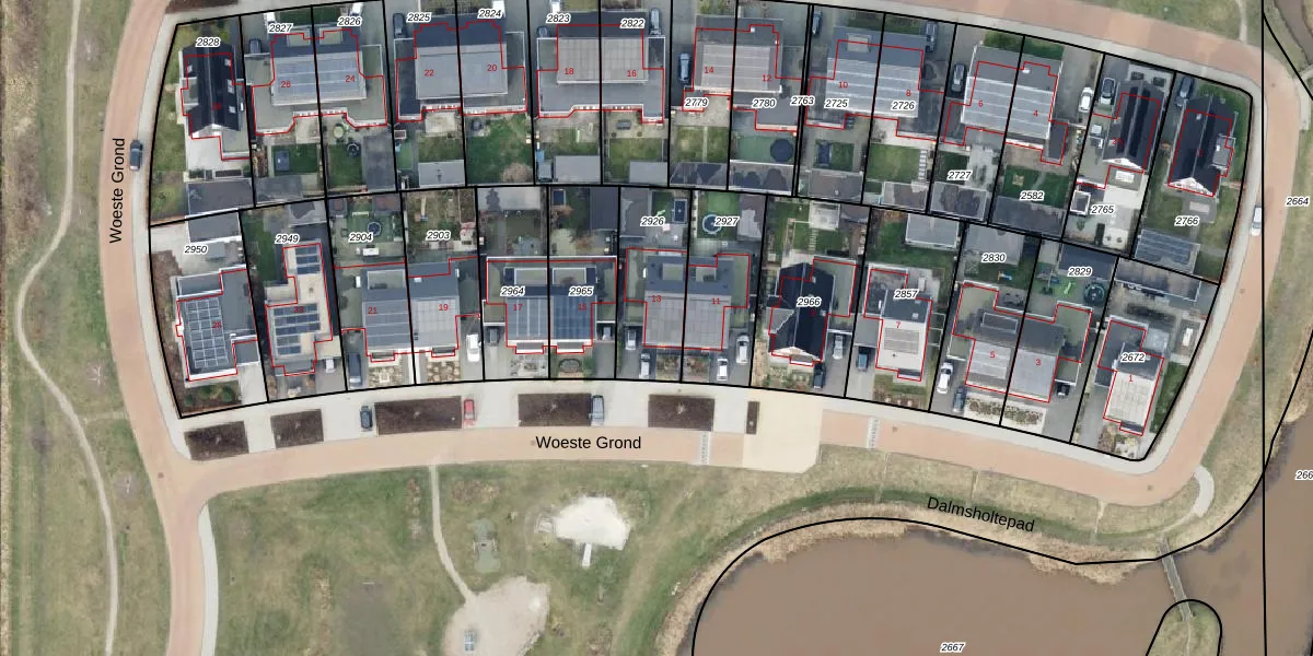 Het perceel waarop Woeste Grond 13 staat heeft een oppervlakte van 310 m². Dit is een groot perceel. De perceeloppervlakte wordt geregistreerd door het Kadaster. Gedetailleerde informatie over de maten van dit perceel kunt u vinden in het rapport Kadastrale kaart met maatvoering van Woeste Grond 13.