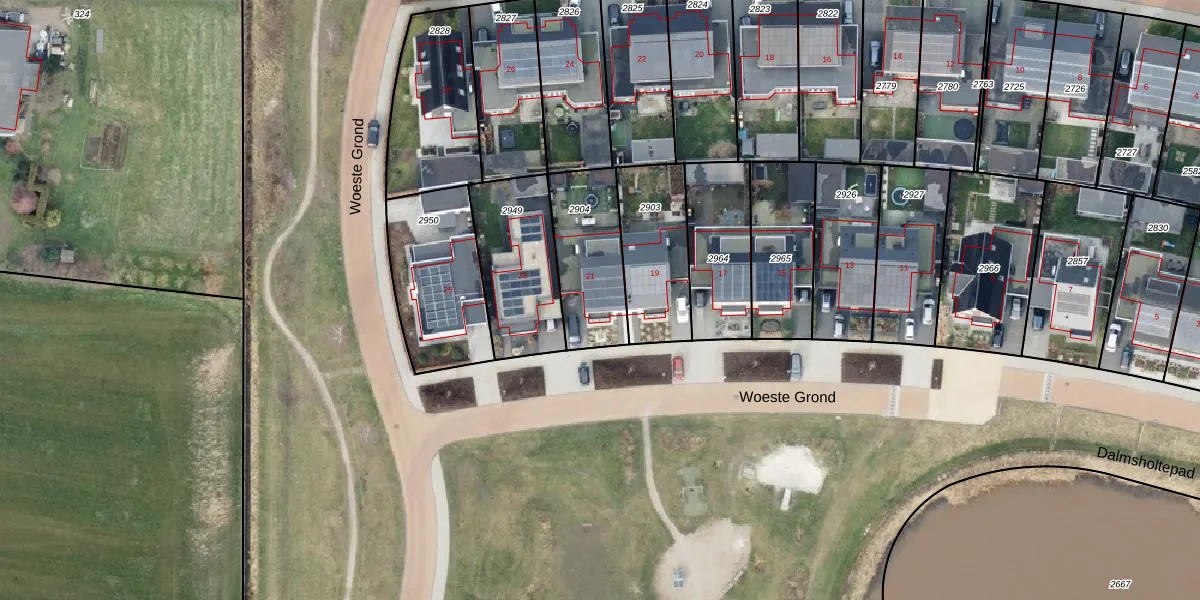 Het perceel waarop Woeste Grond 21 staat heeft een oppervlakte van 325 m². Dit is een groot perceel. De perceeloppervlakte wordt geregistreerd door het Kadaster. Gedetailleerde informatie over de maten van dit perceel kunt u vinden in het rapport Kadastrale kaart met maatvoering van Woeste Grond 21.