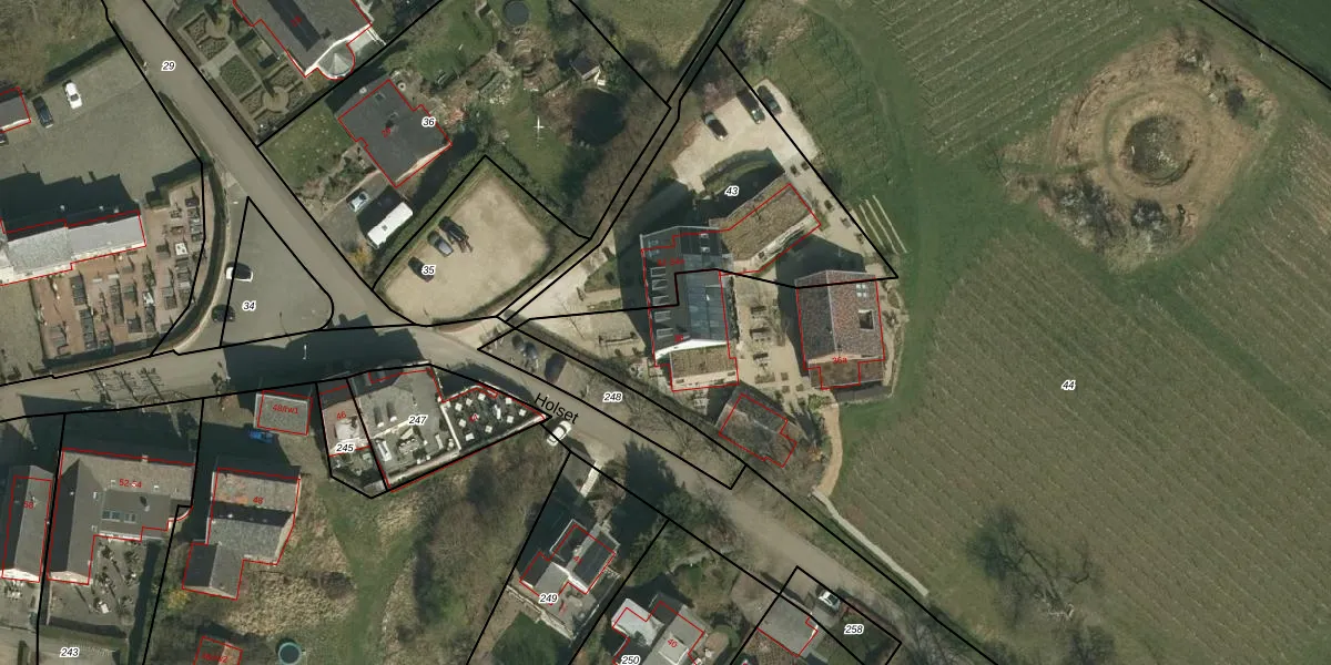 Het perceel waarop Holset 36 staat heeft een oppervlakte van 1,4 ha. Dit is een zeer groot perceel. De perceeloppervlakte wordt geregistreerd door het Kadaster. Gedetailleerde informatie over de maten van dit perceel kunt u vinden in het rapport Kadastrale kaart met maatvoering van Holset 36.